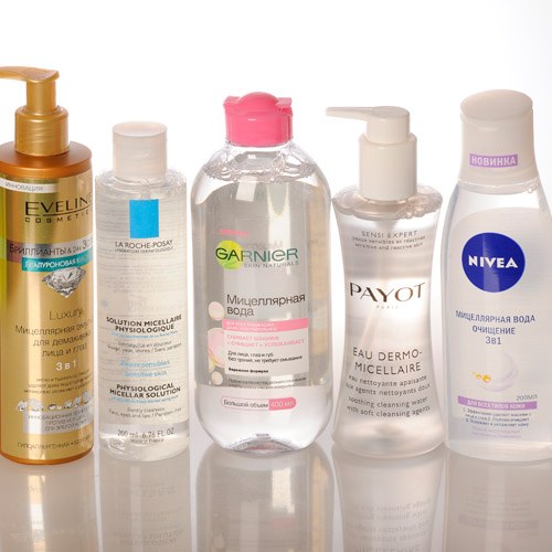 Пример состава мицеллярной воды: Aqua, Hexylene Glycol, Glycerin, Poloxamer 184, Dihydrocholeth-30, Polyaminopropyl Biguanide, Benzyl Salicylate,Propylene Glycol, Disodium Cocoamphodiacetate, Disodium Edta, Rosa Gallica Extract, Parfum