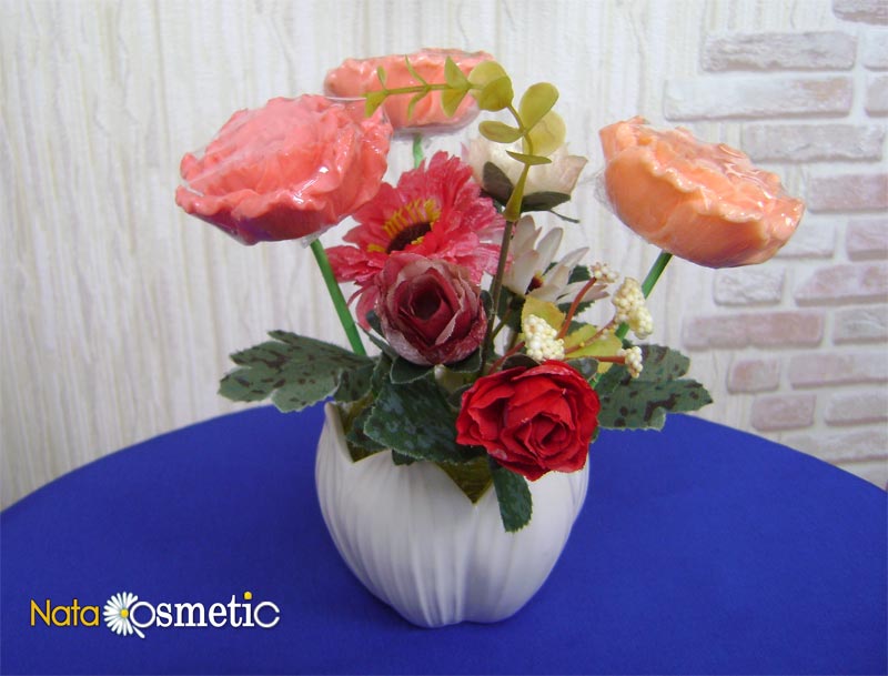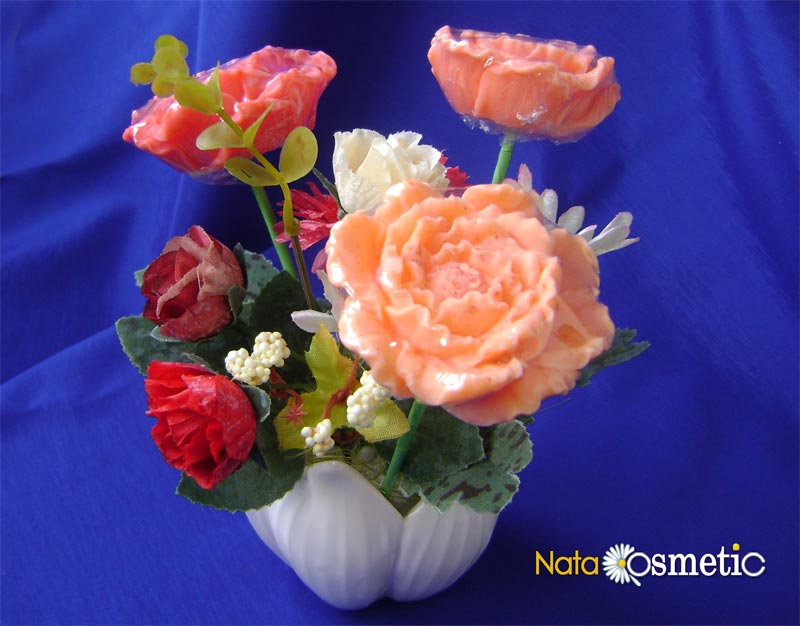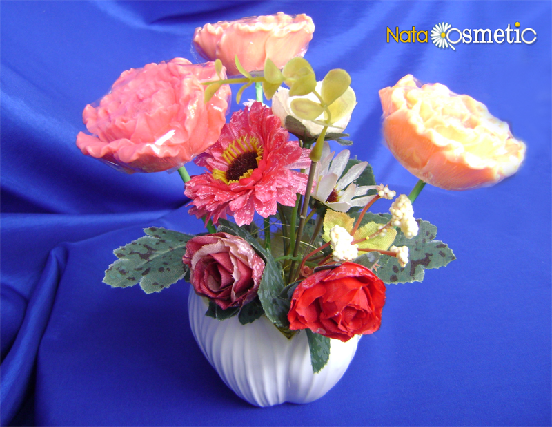 Композиция может остаться а маки будут использованы. Вазочка фарфоровая, так, что тоже можете использоватьеё и для живых цветов. Сами маки это мыло которое нежно позаботится о вашей коже и сохранить молодость и красоту.